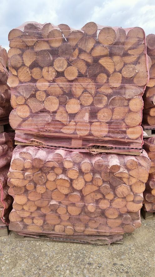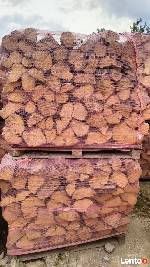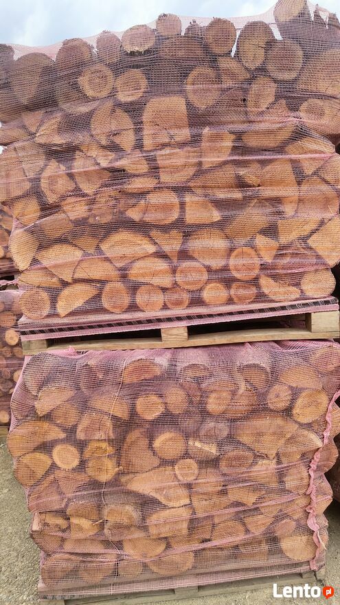 Drewno ręcznie układane na palecie , spięte siatką do drewna tak jak na zdjęciach.